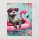 Todos los derechos reservados © Angelandspot Una adorable nutria se enfría en un flamenco rosa flotante un divertido collage