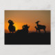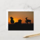 Una pequeña manada de ovejas de rencor se asienta para la noche. Sus siluetas se oponen a la puesta de sol que se enciende detrás de ellas. Arte por computadora de Kathie Miller.