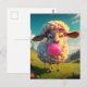 Postal Oveja Divertida Masticando Chicle Rosa