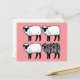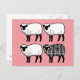 ¡Incluso una oveja negra, símbolo de no conformidad, se ve común cuando se la compara con una oveja damascal negra! Sea diferente de una manera elegante con este ilustracion de ovejas blancas regulares y una oveja damascal negra sobresaliente sobre un fondo con estampado de diamante rosado.