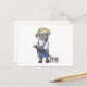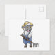 Postal Ovejas como granjero con rastrillo y sombrero