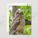 Una lechuga recién nacida se coloca sobre una extremidad de arce y mira fijamente a la cámara.
