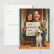 Esta es una hermosa tarjeta postal para invitar a tus amigos y familiares a una ocasión especial o simplemente para decir hola. Este diseño presenta una ilustración de una linda pareja / padres de perros que sostienen un banner con un mensaje personalizable y su cachorro.