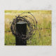 Un enrollamiento apresurado de esgrima de alambre de púas roscado, arrojado a una valla de granja meteorizada. Un amplio campo de gramíneas altas y emblanquecidas se deslizan en la brisa en el fondo, sus cimas llenas de semillas. Esta es la típica escena rural para cualquier persona con ganado o pastos.