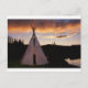 Un títere indio nativo americano con una hermosa puesta de sol colorida en las nubes.