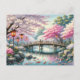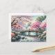 Postal Paisaje japonés con árboles de Bridge, Koi y Sakur