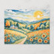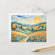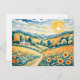 Postal Paisaje Pastel con Campos de Girasol y Ruta