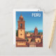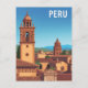 Viaja al corazón de los Andes con esta postal vintage que presenta un hermoso paisaje urbano peruano. La obra de arte destaca los techos de terracota y las torres de campanario históricas de un pueblo peruano clásico, enmarcado en un telón de fondo de majestuosas montañas. Este diseño estilizado evoca la belleza atemporal y la rica cultura de Sudamérica, lo que lo convierte en un recuerdo perfecto, una nota única para un amigo o una hermosa pieza de arte retro para tu hogar.