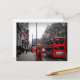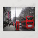 Paisaje urbano de Londres con bus rojo, caja de teléfono roja, y por supuesto banderas de Union Jack.