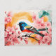 Postal Pájaro acuático en flores de cerezo en primavera