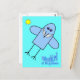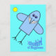 Postal de la Felicidad. Comical pájaro azul personalizado con gran sonrisa tonta volando en el cielo azul con sol amarillo brillante. El texto dice: Pájaro azul de la felicidad. ¡Traeré una sonrisa a cualquier día! Hace un gran regalo feliz para alguien que merece una sonrisa, o quizás para los que desean sonreír un poco más! ¡Difundan el mensaje de felicidad!