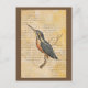 pájaro azul en la rama con texto antiguo en segundo plano