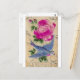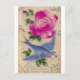 Postal Pájaro Azul Rosa Rosa
