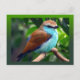 Un ave de dominio público muy colorido, con una pechuga azul y alas marrones rojizas sobre una extremidad de árbol.