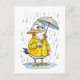 Un ave costera se enfrenta a una lluvia intensa con un abrigo y paraguas amarillo brillante, convirtiendo el mal tiempo en un momento cómico encantador. Esta ilustración combina el ambiente marítimo con un humor peculiar, perfecto para decoración costera y arte de personajes caprichosos.