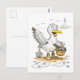 Postal Pájaro Cómico Recolectando Conchas