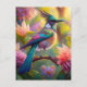 Postal Pájaro de Jay Fantasy con cabeza verde
