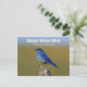 Esta fresca postal contiene una impresionante foto de un pájaro azul de montaña con el texto, el pájaro del estado de Idaho, el pájaro azul de la montaña". Fotografía creada por la galardonada fotógrafa Maria Jeffs.