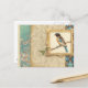 Postal Pájaro marrón y azul en una rama mirando hacia arr