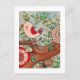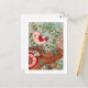 Postal Pájaro retro, rama y flores