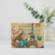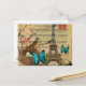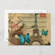 Postal Pájaro Robin de mariposa azul nido Torre Eiffel de