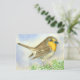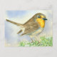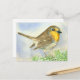 Postal Pájaro Robin sobre una rama de enebro helado