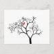 Postal Pájaro rojo cardenal en un árbol de invierno nevad
