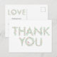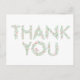 Esta moderna tarjeta de agradecimiento cuenta con un gráfico floral de la palabra Gracias con un pájaro posado dentro de la O. Se puede personalizar con un mensaje y nombres. La paleta de colores es rosa, lavanda y verde. El texto del reverso se puede personalizar o eliminar para notas manuscritas. Coordina con la Colección de Boda Love Birds & Letters.