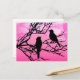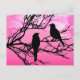 Postal Pájaros en una rama, negros contra el rosa del alb
