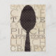 © Pela Studio / Wild Apple. Imagen con una silueta de una cuchara en negro. En la imagen se puede ver un fondo de color marrón con palabras.