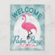 Flamingo rosa de Palm Bay Florida. En el estilo vintage de los posters de viajes, dice "Bienvenidos a Palm Bay, Florida" en color turquesa rosa, blanco y verde menta.