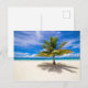 Esta foto muestra una palmera sola en una playa de arena blanca.