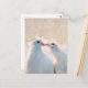 Imagen de dos palomas blancas de besos contra el fondo beige elegante. Texto blanco AMO en el frente, texto de color marrón que te amo. Tuyo, Jenny en la espalda. Gracioso, romántico, elegante y perfectamente una postal para cualquiera. Personalizable, puede cambiar los textos de las plantillas en la parte delantera y en la parte posterior. ¡Diviértete y sé feliz!