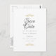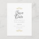 Esta moda salva la tarjeta de fecha de las palomas y corazones dorados por encima y por debajo de la marca de fecha guardar los detalles de fecha establecidos en la tipografía clásica elegante. El reverso tiene detalles adicionales para guardar la fecha, incluido el sitio web del boda, con la dirección de devolución y el espacio para la dirección del destinatario.