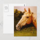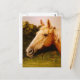 Una pintura al óleo sobre lienzos de un hermoso caballo palomino con un blanco inmaculado está disponible como una bonita postal.