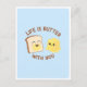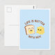 Tarjeta postal divertida con la letra "La vida es mejor con mantequilla contigo" es un saludo perfecto, lindo, afectuoso y ligero para tus seres queridos. Pan y mantequilla kawaii lindos y sonrientes con diferentes fondos de colores pastel calentarán el corazón de tus amigos, familiares, parientes, novias, novios o cónyuges.