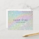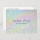 Una imagen de fondo brillante holográfico proporciona un diseño dulce en esta tarjeta postal personalizada. El brillo colorido recuerda a golosinas azucaradas creando el diseño perfecto para panaderías, decoradores de pasteles, dulcerías, blogueros de comida, golosinas y más. Por favor, contacte al diseñador para obtener ayuda con nombres más largos o tipografía especial. Utilice estas tarjetas postales para enviar anuncios, promociones especiales o para correspondencia y agradecimientos con sus clientes. Arte y diseño © 1201AM Design Studio | www.1201am.com