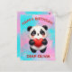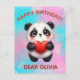 Desea un feliz cumpleaños con un diseño de panda lindo sosteniendo corazón. Todo el texto se puede personalizar fácilmente para adaptarse a tus necesidades.