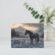 Un impresionante caballo negro se alza majestuosamente en un sereno paisaje nevado, con su abrigo oscuro que contrasta maravillosamente con la crujiente nieve blanca. La tranquila escena invernal capta la belleza de la tranquilidad de la naturaleza, con delicados copos de nieve que descienden suavemente alrededor del caballo.