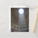 En esta postal se puede ver la imagen del techo del Panteón de Roma. Un templo antiguo consagrado a todos los dioses. La ventana circular y la puerta de entrada son las únicas fuentes de luz en el interior.