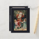 El alegre Papá Noel, de cama roja, sostiene su saco de regalos y está holly con tres niños felices bailando a su alrededor, con los pimletos encima de él y los objetos de oro. El color de fondo es el personalizable. El reverso presenta gráficos complementarios personalizado únicos con campos de texto editables.