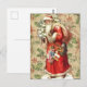 Postal Papá Noel vintage con juguetes y árbol de Navidad