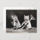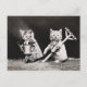 Sólo una de una serie de postales lindas con fotos antiguas de cachorros y gatitos vestidos como humanos y en situaciones humanas.