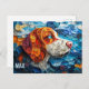 Este es un retrato abstracto de un perro colorido de raza Basset Hound con estilo artístico de tejido de papel. Es una preciosa postal para los amantes del perro y los dueños del Basset Hound.