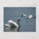 Postal creada a partir de una foto de un pájaro volando sobre un cisne en el lago Morton creada como postal.