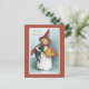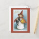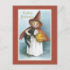 Esta linda postal tiene la reproducción de un ilustracion vintage de una niñita sosteniendo un gato negro y jack o'lantern. El texto dice: "Halloween de alegría". Una gran manera de desear a tus amigos y familia una Feliz Halloween.