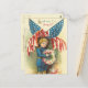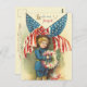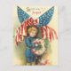 Imagen de la festividad vintage que muestra a un niño sosteniendo una corona florida con banderas estadounidenses. Dice "Para que no olvidemos" la celebración del Día de la Memoria.