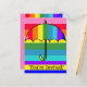 Postal con paraguas de rayas de arcoiris. Agregue la información de evento / fiesta en la parte posterior de la tarjeta. Bien por cumpleaños, eventos del Día del Orgullo y más. de Celeste Sheffey khoncepts@yahoo.com