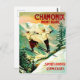 Pareja de esquiadores en la montaña Mont Blanc, Francia. Postal de viaje de vintage
