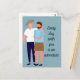 Esta tarjeta de felicitación LGBT presenta a dos hombres gays enamorados. Un hombre de la pareja es rubio y lleva sombrero, y el otro es moreno con barba. La parte frontal de esta postal de aniversario de boda LGBTQ dulce dice "todos los días contigo es una aventura". Personalice esta cita romántica o déjela tal cual.